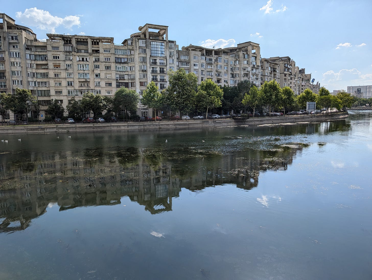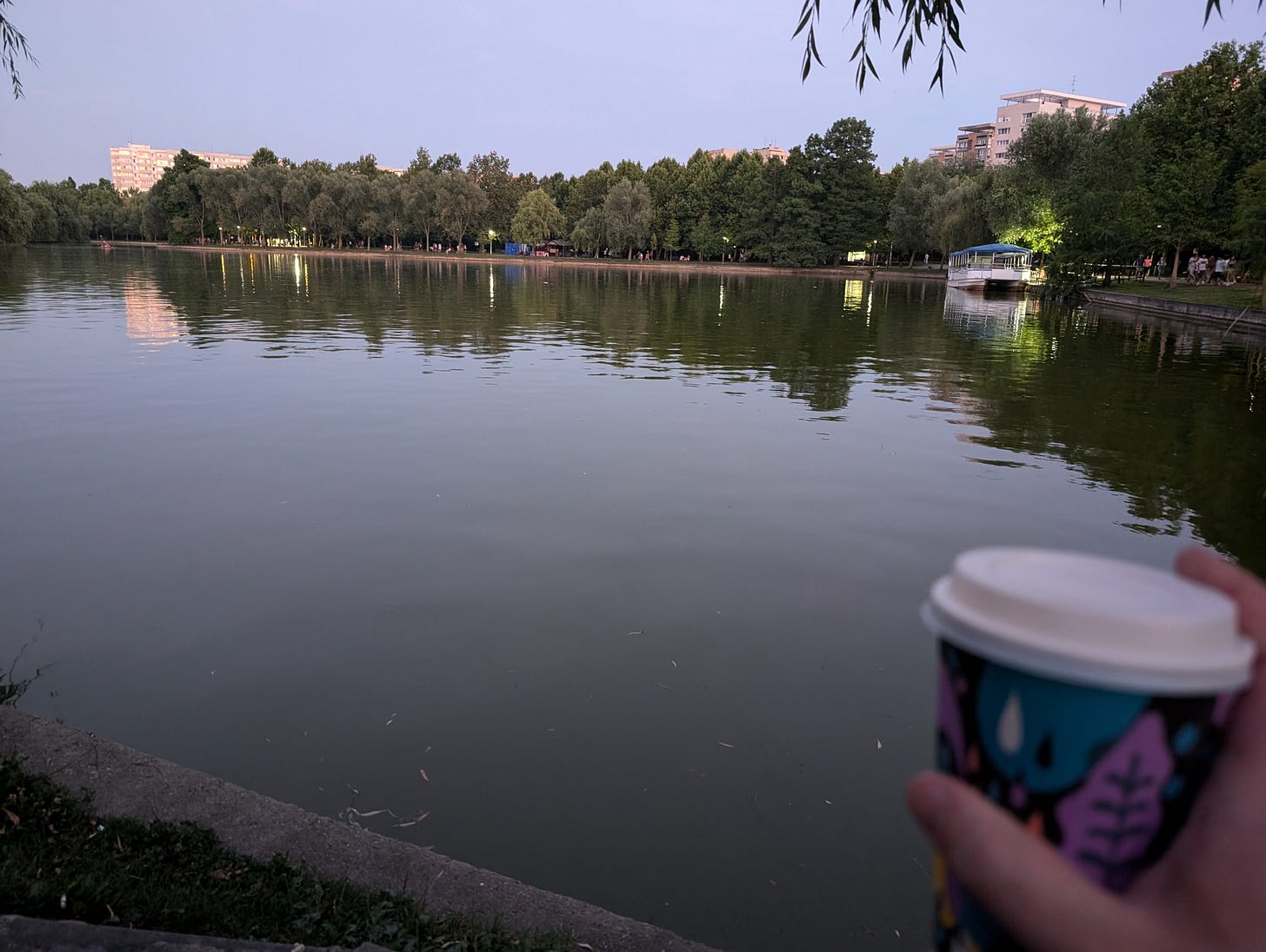 Back in my burning hot hostel I sat shirtless in the kitchen with my host, also shirtless, and discussed just how ridiculous my day of bureaucracy was. After a length of time, the time it takes to charge my phone to 30%, I once again struggled to slide my t-shirt over my sweating skin (also, is this thing getting tighter?) and set out to the Carrefour’s awaiting air-conditioning. I picked up more food, this time sarmale; cabbage rolls often stuffed with meat and rice. Being sensible, I picked up some grilled vegetables too. And maybe a pastry. And a couple of beers. Some rudimentary research revealed public drinking to be less than legal, so I picked up an empty coffee cup at a nearby cafe and set out to the adjoining park (yes, it’s a park with a lake) for my evening picnic.