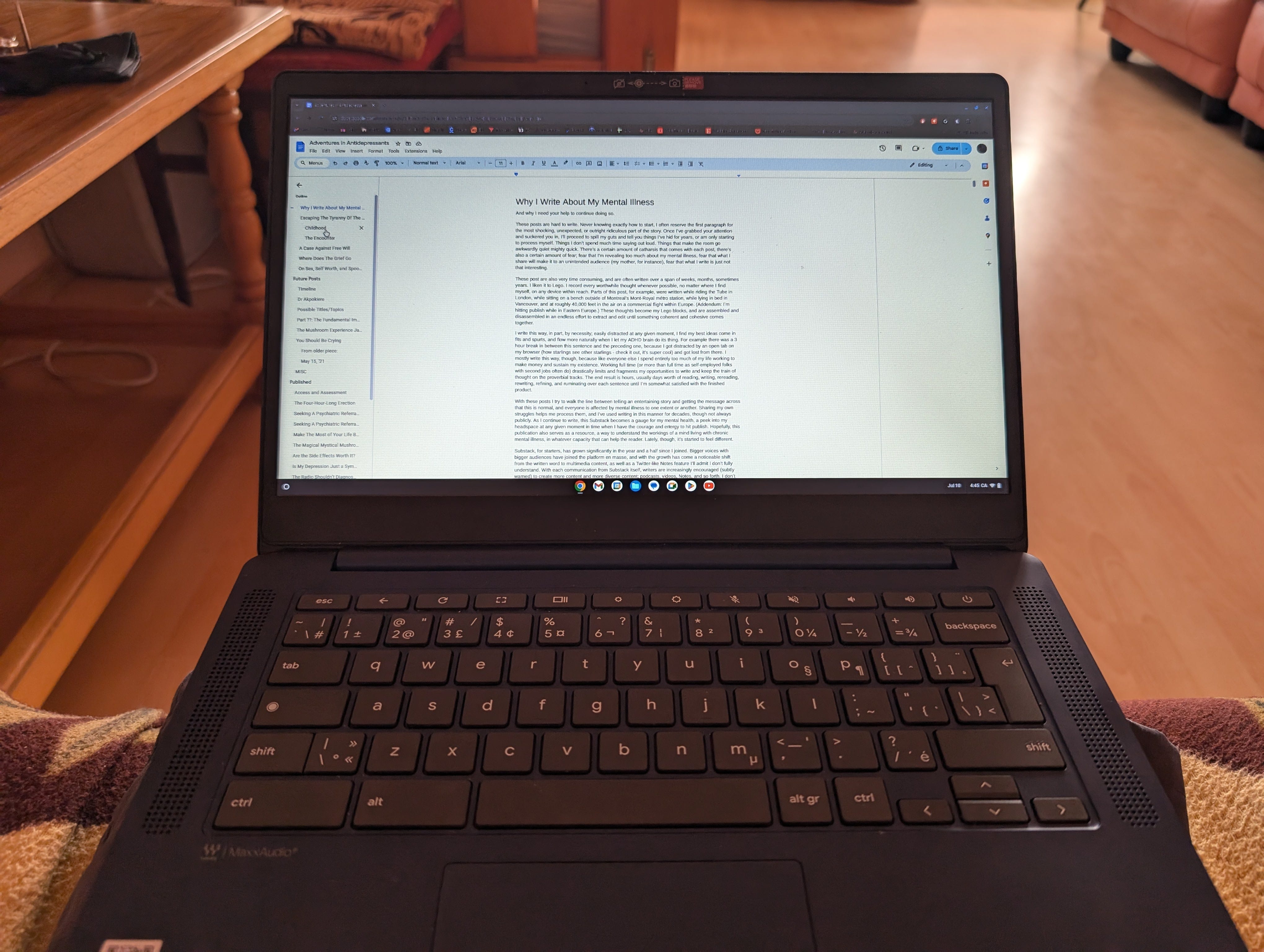 With these posts I try to walk the line between telling an entertaining story and getting the message across that this is normal, and everyone is affected by mental illness to one extent or another. Sharing my own struggles helps me process them, and I’ve used writing in this manner for decades, though not always publicly. As I continue to write, this Substack becomes a gauge for my mental health, a peek into my headspace at any given moment in time when I have the courage and energy to hit publish. Hopefully, this publication also serves as a resource, a way to understand the workings of a mind living with chronic mental illness, in whatever capacity that can help the reader. Lately, though, it’s started to feel different.